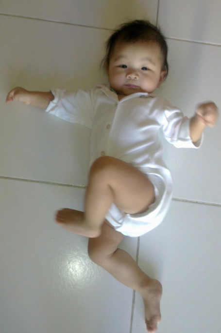 When Shannen was young, she was so scared when we left her on the hard, cold tiles. She would scream for help. As for Sarah.... Take a look for yourself. Lolz..